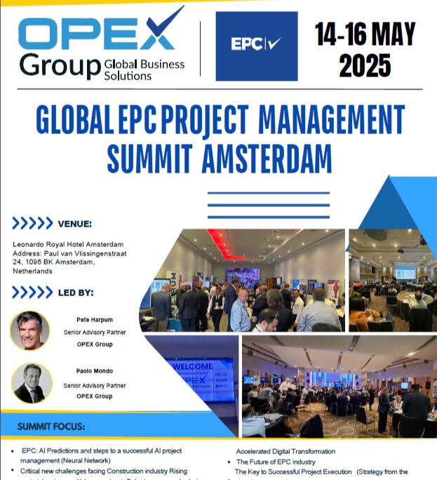 The OPEX 13th Annual Global EPC Project Management Summit is scheduled to take place in London in September 2025. This prestigious event brings together industry leaders, project management professionals, and experts from the Engineering, Procurement, and Construction (EPC) sector from around the globe. Attendees will have the opportunity to engage in insightful discussions, attend keynotes from top industry experts, and participate in interactive workshops designed to enhance project management skills. The summit will cover critical topics such as project delivery, risk management, digital transformation, and sustainability in EPC projects. With a focus on innovation and best practices, this summit aims to provide valuable insights and practical solutions to drive successful project outcomes. Don't miss the chance to connect with peers, expand your professional network, and stay ahead of the latest trends and challenges in the EPC industry. Join us in London this September for a transformative experience at the OPEX 13th Annual Global EPC Project Management Summit.